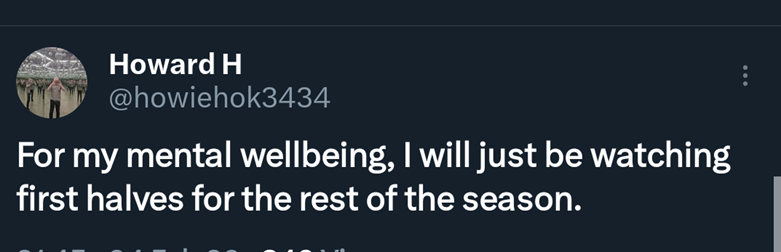The chasm between City’s 1st and 2nd halves is truly baffling. They are always from a point of winning, so perhaps Sunday will show how much relevance that has, as there’s a fair chance this time City will not be ahead at the break. what is concerning is for me is Pep’s failure to react, or him not knowing how to, to opposition managers’ half-time changes. City’s press stops working when other managers adapt and change their team;s shape, and Pep seems powerless to combat it with his own changes. It is concerning.