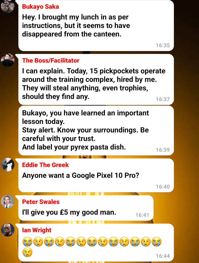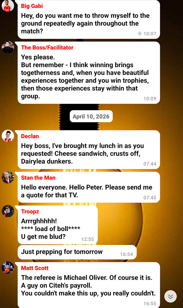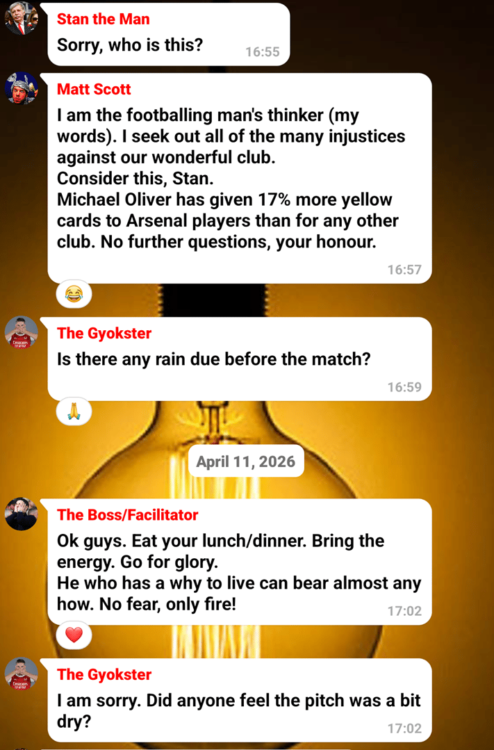 As promised, here is the exclusive I promised. A leaked WhatsApp chat from inside Arsenal this week.